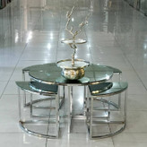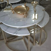 میز جلو مبلی عسلی قهوه خوری پاف مدل پیتزایی گرد کروم نقره ای