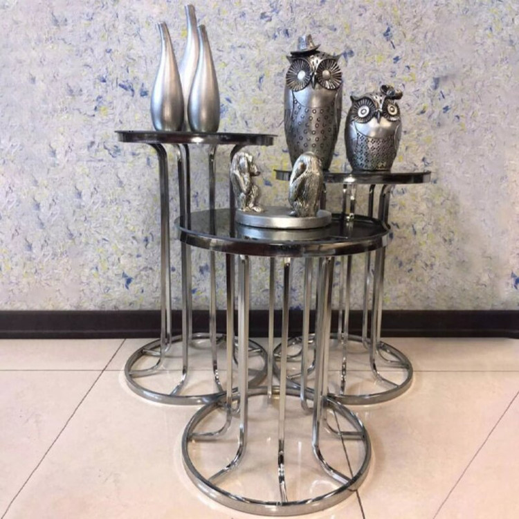 میز جلومبلی قهوه خوری پاف مدل ستونی کروم نقره ای جنس فلز با آبکاری ماندگار کروم نقره ای صفحه به انتخاب مشتری آیینه شیشه دودکی و برنز ویا چوب ام دی اف با روکش وکیوم هایگلس