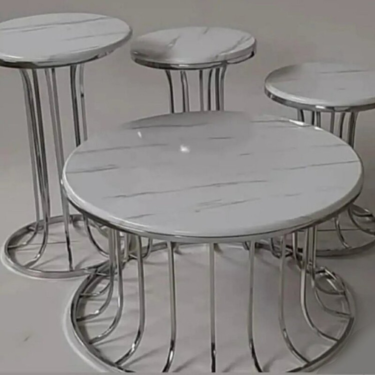 جلومبلی عسلی قهوه خوری پاف مدل ستونی رنگ کروم نقره ای