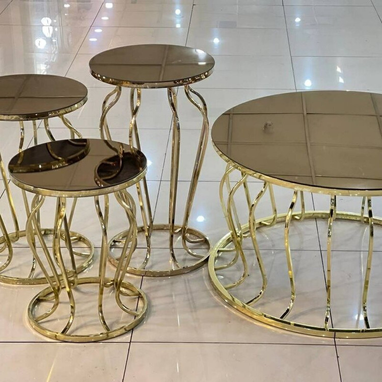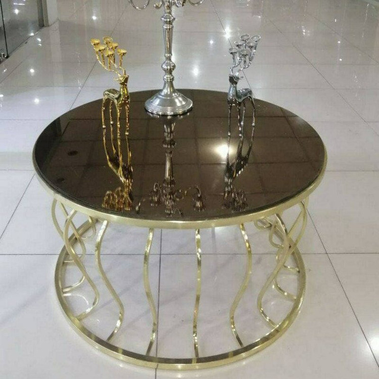 میز جلومبلی عسلی قهوه خوری پاف مدل گلدانی فورتیک طلایی بدنه از جنس پروفیل آهن آبکاری ماندگار فورتیک طلایی صفحه شیشه دودی و برنز و یا چوب ام دی اف با روکش وکیوم هایگلاس