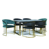 میز نهارخوری غذاخوری فلزی ۴ نفره مدل سزار در دو رنگ کروم نقره ای و فورتیک طلایی روکش صندلی به انتخاب مشتری در رنگبندی متنوع (در قسمت گفتگو) صفحه میز MDF مرغوب با روکش هایگلاس وکیوم در ۱۰ رنگ و طرح متنوع (در قسمت گفتگو)